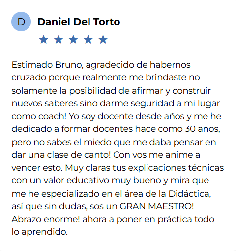 🔹 Tu propia voz: Una sesión privada con Bruno enfocada íntegramente en el desarrollo de tu voz.