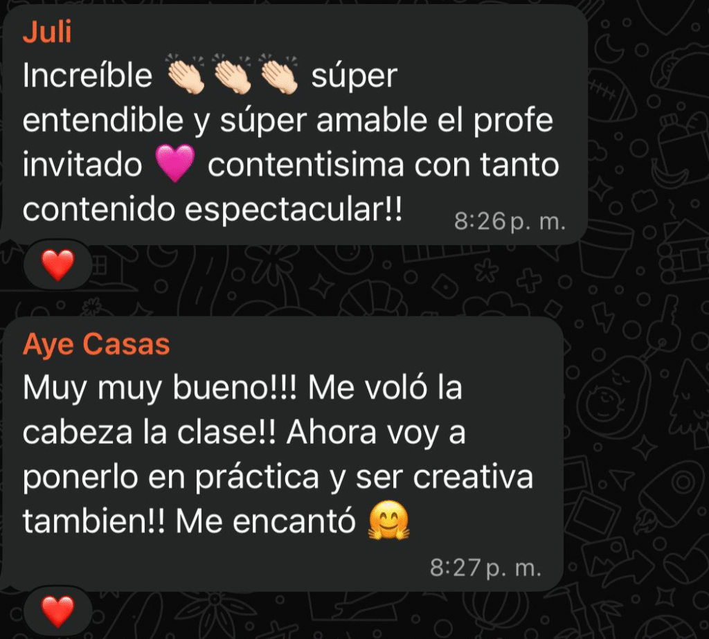 Él es un maestro que inspira a crecer, tiene las herramientas que mi instrumento necesita y me ha ayudado a conocerlo en profundidad. Con su guía, aprendí a entender qué necesita mi voz y cómo acompañarla.